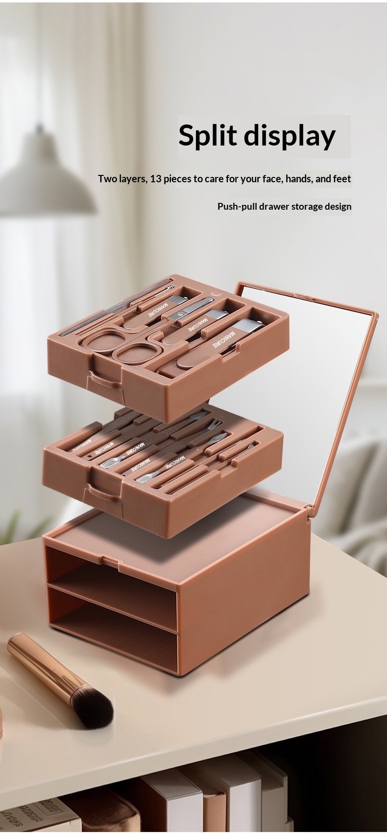 Color Options: [Cosmetic Mirror Case] Coffee Brown – Splash-Proof 13-Piece Set, [Cosmetic Mirror Case] Fresh Green – Splash-Proof 13-Piece Set, [Cosmetic Mirror Case] Lemon Yellow – Splash-Proof 13-Piece Set, [Cosmetic Mirror Case] Cherry Pink – Splash-Proof 13-Piece Set, [Cosmetic Mirror Case] Milk White – Splash-Proof 13-Piece Set